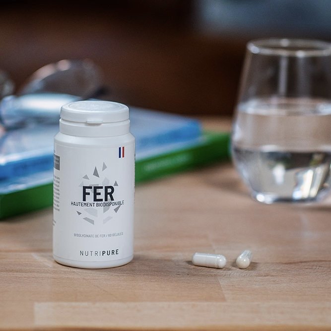 Nutripure a choisi le Ferrochel®, un bisglycinate de fer breveté et cliniquement étudié pour sa biodisponibilité élevée et son excellente tolérance. Ce complément est 100 % vegan, sans excipients, sans additifs inutiles, et convient à tous ceux qui recherchent une solution simple, efficace et naturelle pour combler leurs besoins en fer. Grâce à sa pureté et sa qualité, le bisglycinate de fer Nutripure est idéal pour retrouver un bon niveau d’énergie, améliorer sa récupération et prendre soin de sa santé globale, jour après jour.